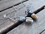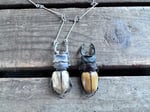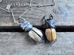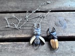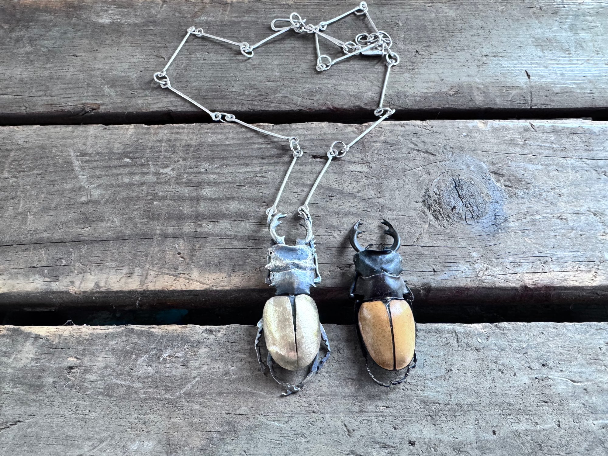 From top of the beetle to the bottom, it measures 3". The hand made sterling silver chain is 23-25", designed to be adjustable.