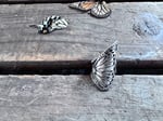 This Monarch butterfly ring is size 6.5-7.5, adjustable. This particular ring is the right side of a wing pair.