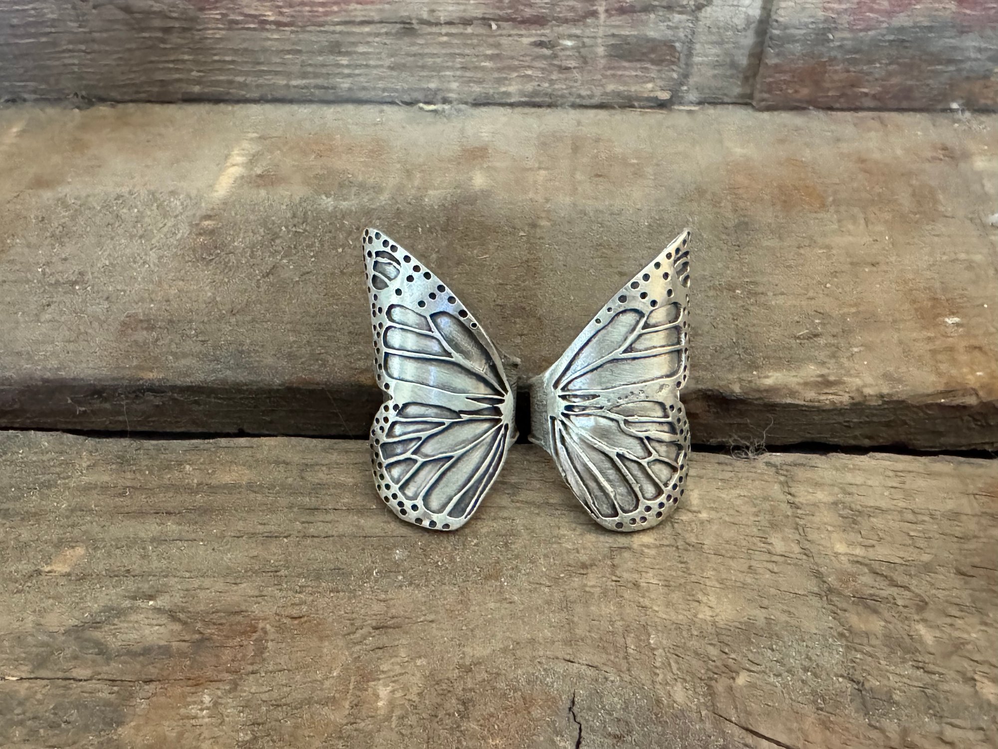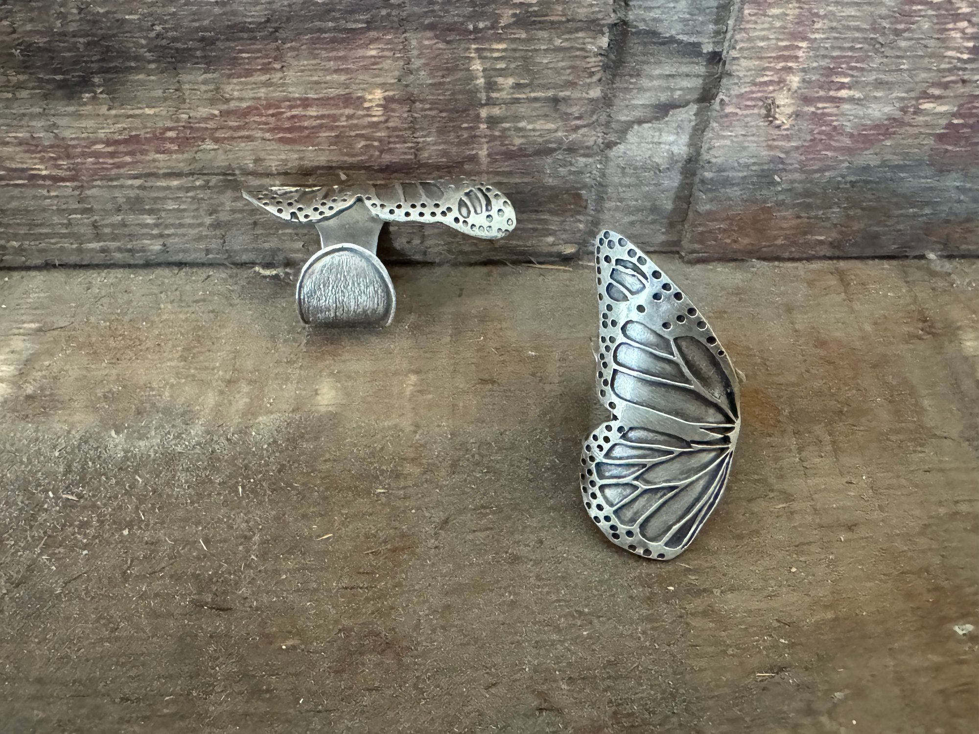 This Monarch butterfly ring is size 7-8, adjustable. This particular ring is the left side of the wing pair.