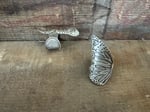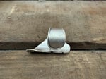 The wing is sawed, soldered, and formed. It's designed to be a statement piece, maybe worn best on longer fingers (although I have stubby fingers and I love wearing it since I prefer bolder statement pieces). The wing is 1.6" from top to bottom. The underside of the ring band is .3" wide.