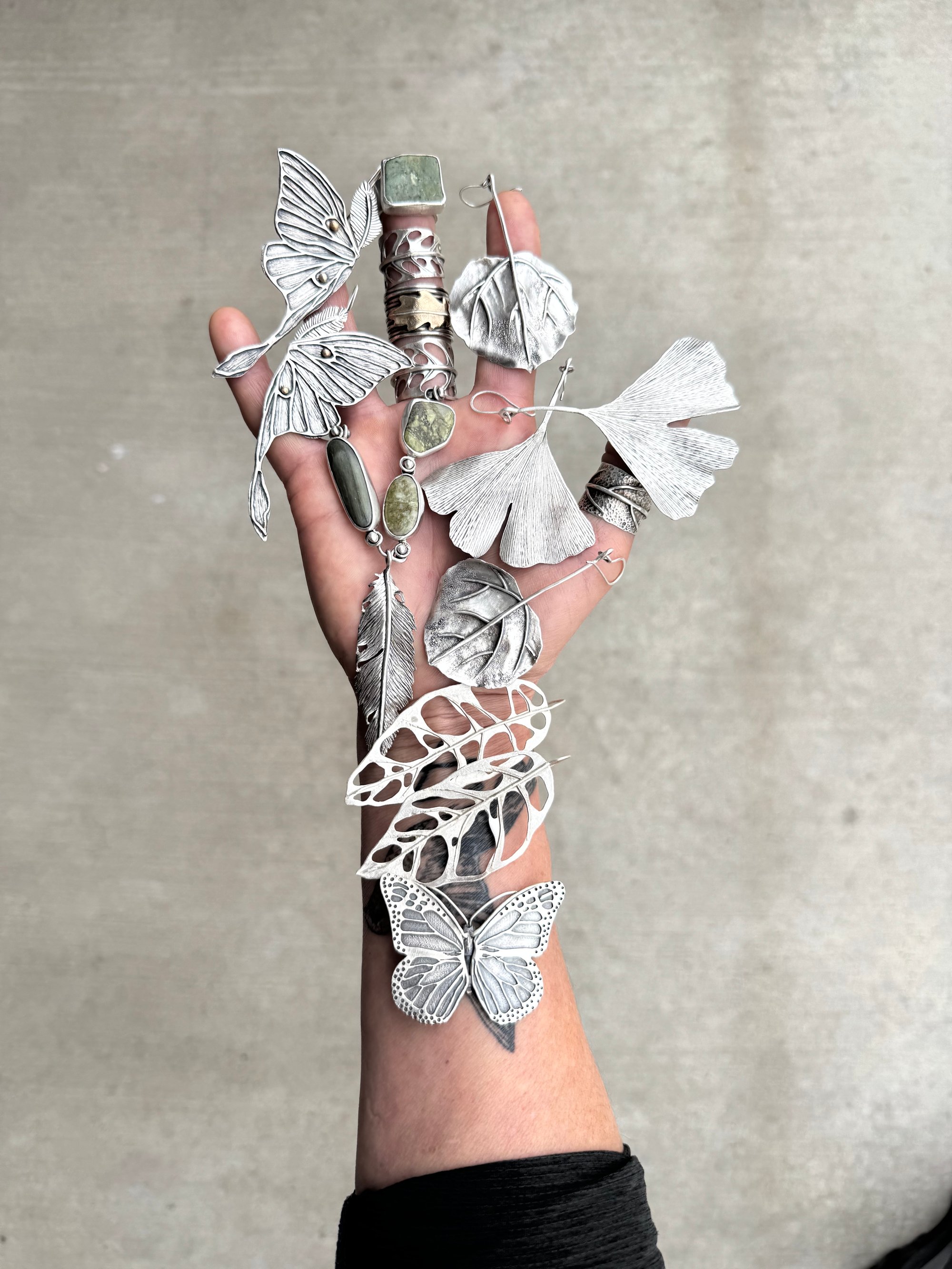 I found the stones in this necklace on San Juan Island, which is situated off the coast of Washington state. They are lightly polished with a tumbler, and framed by simple bezel settings.
