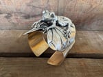Imagine walking through a botanical garden until you come across a pond filled with lily pads. On top, you might spot water bugs, mayflies, and an eager frog. Hopefully this statement cuff captures that moment.